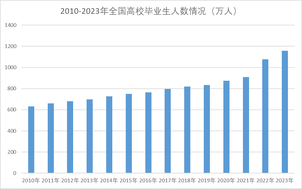 此外,考研熱度不減也與嚴(yán)峻的就業(yè)形勢(shì)關(guān)系密切。自2011年至2021年,十年間全國(guó)高校畢業(yè)生同比增長(zhǎng)率基本維持在2%-5%的區(qū)間。2022年全國(guó)高校畢業(yè)生人數(shù)首次突破千萬(wàn),達(dá)到1076萬(wàn),同比增長(zhǎng)18.37%,規(guī)模和增量均創(chuàng)下歷史新高。2023年高校畢業(yè)生規(guī)模預(yù)計(jì)達(dá)到1158萬(wàn)人,增長(zhǎng)率為7.62%,明年高校畢業(yè)生就業(yè)形勢(shì)依然嚴(yán)峻。