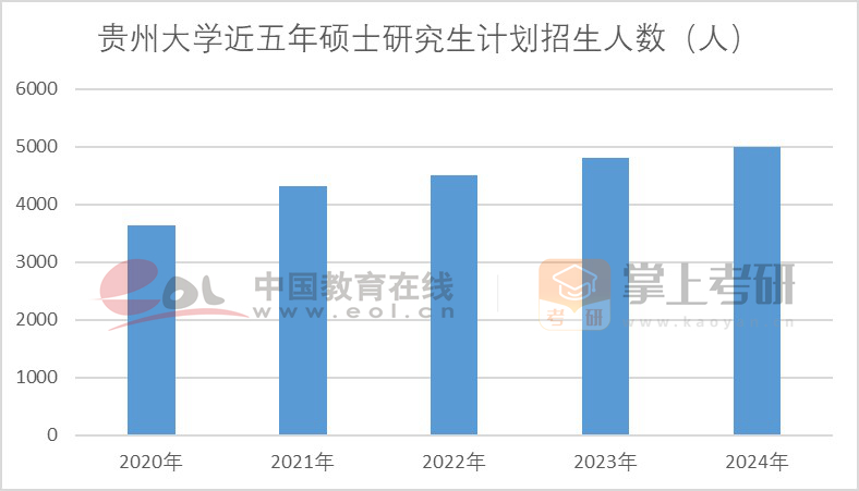 雖然各校招生規(guī)模不斷,但增幅較往年有所放緩。貴州大學(xué)五年間碩士研究生招生計劃持續(xù)增長。2020年計劃招收3642人,2024年計劃招收人數(shù)達(dá)到5000名,五年間增長1358人。不過2024年學(xué)校招生計劃增幅為4.2%,低于去年的6.7%。