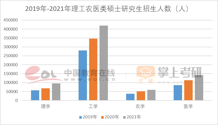 從近三年的情況看,理工農(nóng)醫(yī)類專業(yè)碩士研究生招生總?cè)藬?shù)也均呈現(xiàn)持續(xù)增長態(tài)勢。