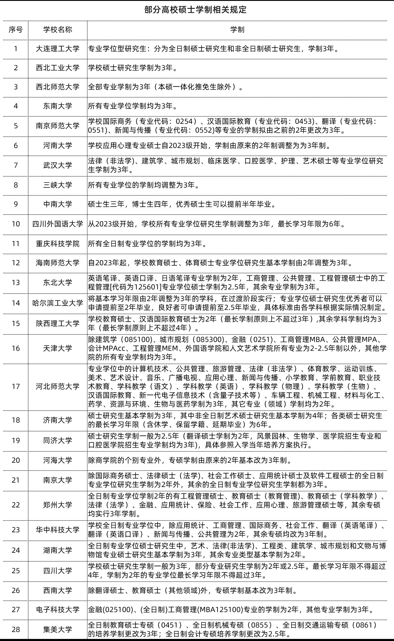修業(yè)年限作為研究生教育的重要制度,更是關(guān)系到研究生培養(yǎng)的整體規(guī)劃。為提高培養(yǎng)質(zhì)量,保障專業(yè)碩士有足夠的實(shí)習(xí)實(shí)踐與項目實(shí)踐經(jīng)驗,高校普遍將專業(yè)碩士的學(xué)制從2年或2.5年延長至3年。
