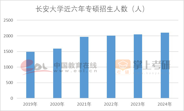 長安大學(xué)近六年來招收專業(yè)碩士人數(shù)逐年增長。從2019年招收專碩1490人,到2024年招收專碩2104人,六年間擴(kuò)招專業(yè)碩士614人。
