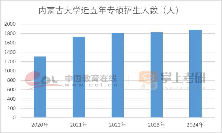 內(nèi)蒙古大學(xué)2020年招收專碩1305人,到2024年招收專碩1882人,五年間擴(kuò)招專碩577人。