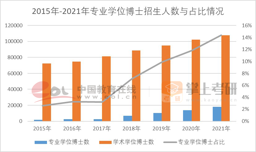 根據(jù)教育部日前發(fā)布的《關(guān)于深入推進(jìn)學(xué)術(shù)學(xué)位與專業(yè)學(xué)位研究生教育分類發(fā)展的意見》,明確提出大幅增加博士專業(yè)研究生招生數(shù)量,我們可以預(yù)見專業(yè)博士將進(jìn)入快速增長階段。