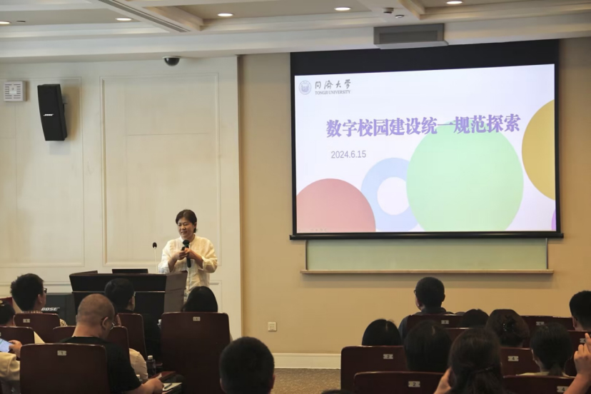同濟(jì)大學(xué)信息化辦公室副主任馮昕分享了關(guān)于數(shù)字校園建設(shè)統(tǒng)一規(guī)范探索的經(jīng)驗(yàn)與思考。在同濟(jì)大學(xué)《人工智能賦能學(xué)科創(chuàng)新發(fā)展行動(dòng)計(jì)劃(2024-2027)》引領(lǐng)下,同濟(jì)大學(xué)智慧校園建設(shè)立足師生實(shí)際需求,自上而下相互協(xié)同,以統(tǒng)一建設(shè)規(guī)范、統(tǒng)一技術(shù)底座、統(tǒng)一身份管理、統(tǒng)一數(shù)據(jù)共享、統(tǒng)一用戶體驗(yàn),五個(gè)“統(tǒng)一”做好數(shù)字校園規(guī)范建設(shè)。她指出,“數(shù)字服務(wù)品質(zhì)的提升,沒(méi)有最好,只有更好?!痹诮ㄔO(shè)數(shù)字高校的過(guò)程中,要進(jìn)行宏觀到微觀的全局掌控,不斷提升數(shù)字人才的綜合能力,業(yè)務(wù)與技術(shù)雙料并重,才能真正觸達(dá)用戶。