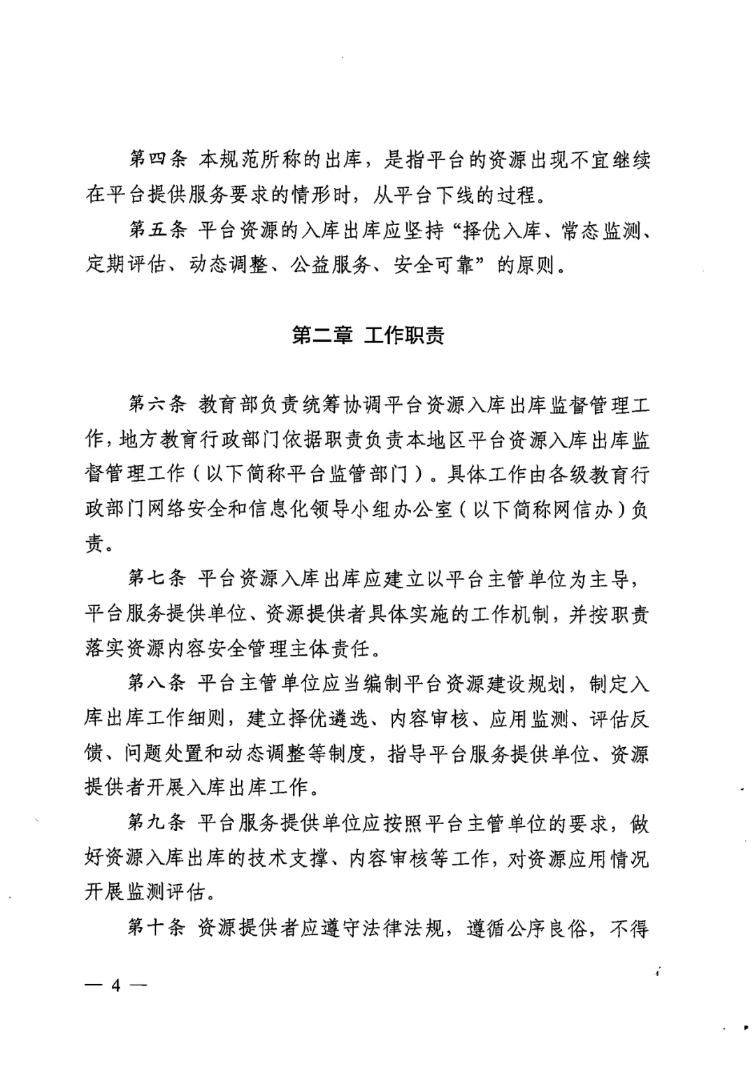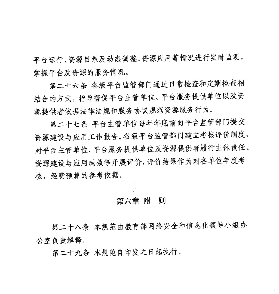 《規(guī)范》明確了國(guó)家智慧教育平臺(tái)數(shù)字教育資源入庫(kù)出庫(kù)的工作職責(zé)、入庫(kù)管理、出庫(kù)管理、監(jiān)督評(píng)價(jià)等二十九條相關(guān)規(guī)定,旨在豐富國(guó)家智慧教育平臺(tái)數(shù)字教育資源供給,提升資源質(zhì)量,實(shí)現(xiàn)對(duì)資源的動(dòng)態(tài)更新調(diào)整,滿足師生和社會(huì)公眾對(duì)優(yōu)質(zhì)數(shù)字教育資源的需求。