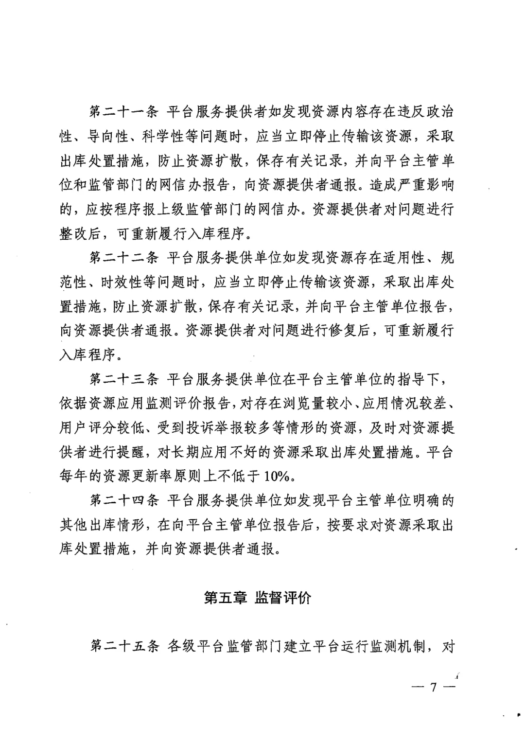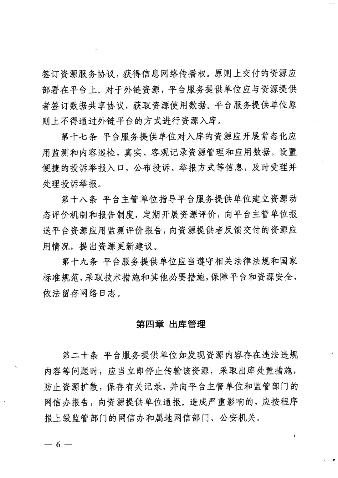 《規(guī)范》指出,平臺(tái)資源的入庫(kù)出庫(kù)應(yīng)堅(jiān)持“擇優(yōu)入庫(kù)、常態(tài)監(jiān)測(cè)、定期評(píng)估、動(dòng)態(tài)調(diào)整、公益服務(wù)、安全可靠”的原則。