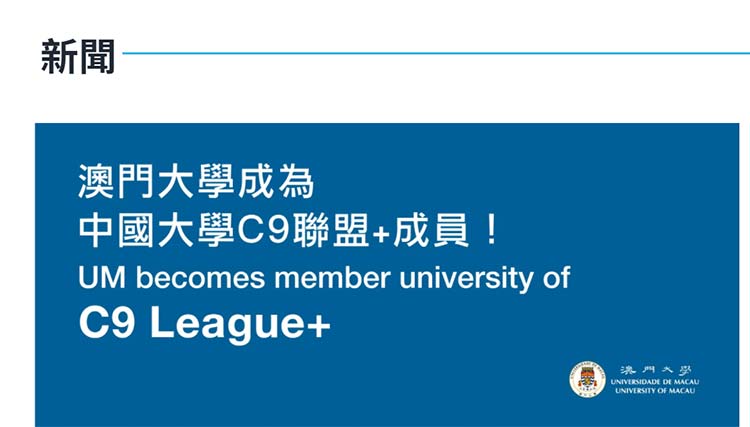 經(jīng)中國大學(xué)校長聯(lián)誼會理事會審議,澳門大學(xué)正式加入 “中國大學(xué)校長聯(lián)誼會”(C9聯(lián)盟+)。澳門大學(xué)的加入意味著“C9+3+1”的交流合作框架正式形成。