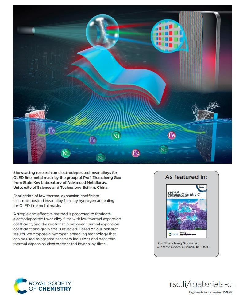 近日,北京科技大學(xué)綠色低碳鋼鐵冶金全國重點實驗室郭占成教授團隊在制備近零膨脹近零夾雜物因瓦合金箔方面取得重大突破,該研究成果為解決我國FMM“卡脖子”材料提供了關(guān)鍵技術(shù)基礎(chǔ)。國外Journal of Materials Chemistry C以封面論文形式發(fā)表了該研究成果,論文第一作者是博士研究生任為,通訊作者郭占成。