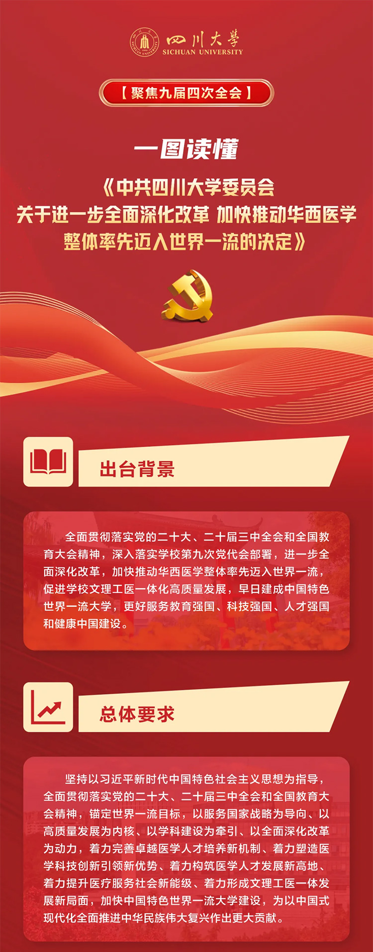 會議號召,全校各級黨組織和廣大干部師生要更加緊密地團結(jié)在以習近平同志為核心的黨中央周圍,踔厲奮發(fā)、改革創(chuàng)新,加快推動華西醫(yī)學整體率先邁入世界一流,奮力譜寫中國特色世界一流大學建設(shè)新篇章,為強國建設(shè)、民族復興偉業(yè)作出新的更大貢獻!