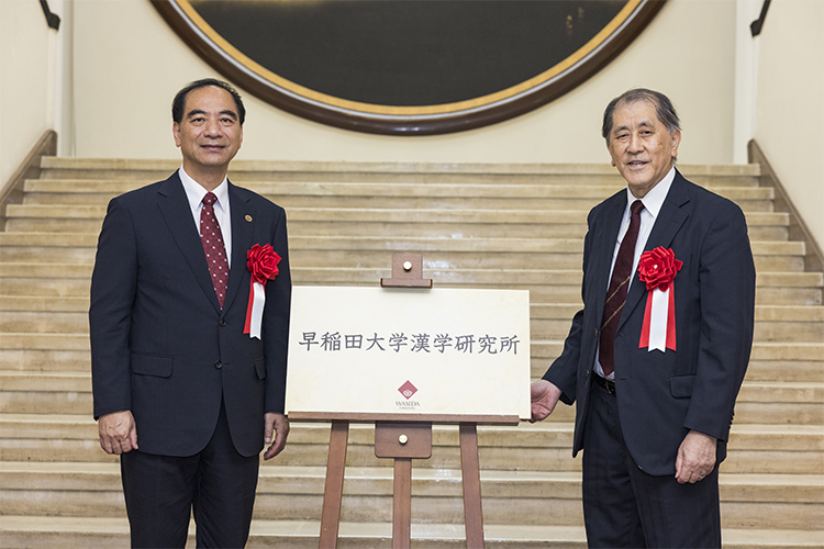 龔旗煌和田中愛治共同為漢學(xué)研究所揭幕