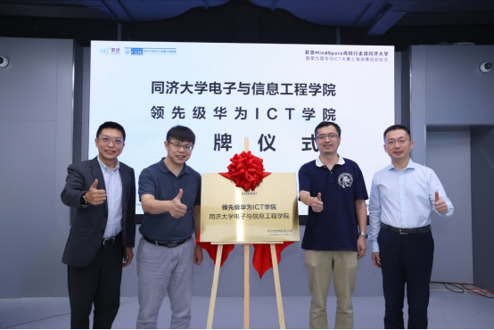 2024年9月27日,昇思MindSpore高校行走進(jìn)同濟(jì)大學(xué)暨第九屆華為ICT大賽上海市賽啟動儀式在同濟(jì)大學(xué)四平路校區(qū)順利舉辦?;顒又?,同濟(jì)大學(xué)電子與信息工程學(xué)院與華為技術(shù)有限公司共建“領(lǐng)先級華為ICT學(xué)院”正式揭牌。華為技術(shù)有限公司中國區(qū)產(chǎn)業(yè)發(fā)展與生態(tài)部副部長王新、中國區(qū)人才發(fā)展業(yè)務(wù)校企合作總監(jiān)褚力行、華為ICT學(xué)院合作總監(jiān)魏彪、華為上海ICT學(xué)院合作總監(jiān)翟彥杰等一行參與授牌,同濟(jì)大學(xué)電子與信息工程學(xué)院副院長周俊鶴、副教授齊鵬共同參加授牌儀式。