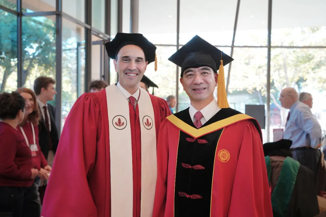 9月27日,斯坦福大學(xué)新任校長就職典禮在斯坦福大學(xué)弗羅斯特圓形劇場(Frost Amphitheater)舉行,來自世界各地高校、科研機(jī)構(gòu)的校長及代表、斯坦福大學(xué)師生代表等共同受邀到場觀禮。斯坦福大學(xué)第9任校長格哈德·卡斯帕(Gerhard Casper)、第10任校長約翰·亨尼斯(John L. Hennessy)、第11任校長馬克·特榭-勒溫(Marc Tessier-Lavigne)、第12任校長理查德·薩勒(Richard Saller)等出席儀式。龔旗煌作為合作高校校長代表,與耶魯大學(xué)前校長蘇必德(Peter Salovey)等共同出席就職典禮。代表團(tuán)成員共同參加了儀式。