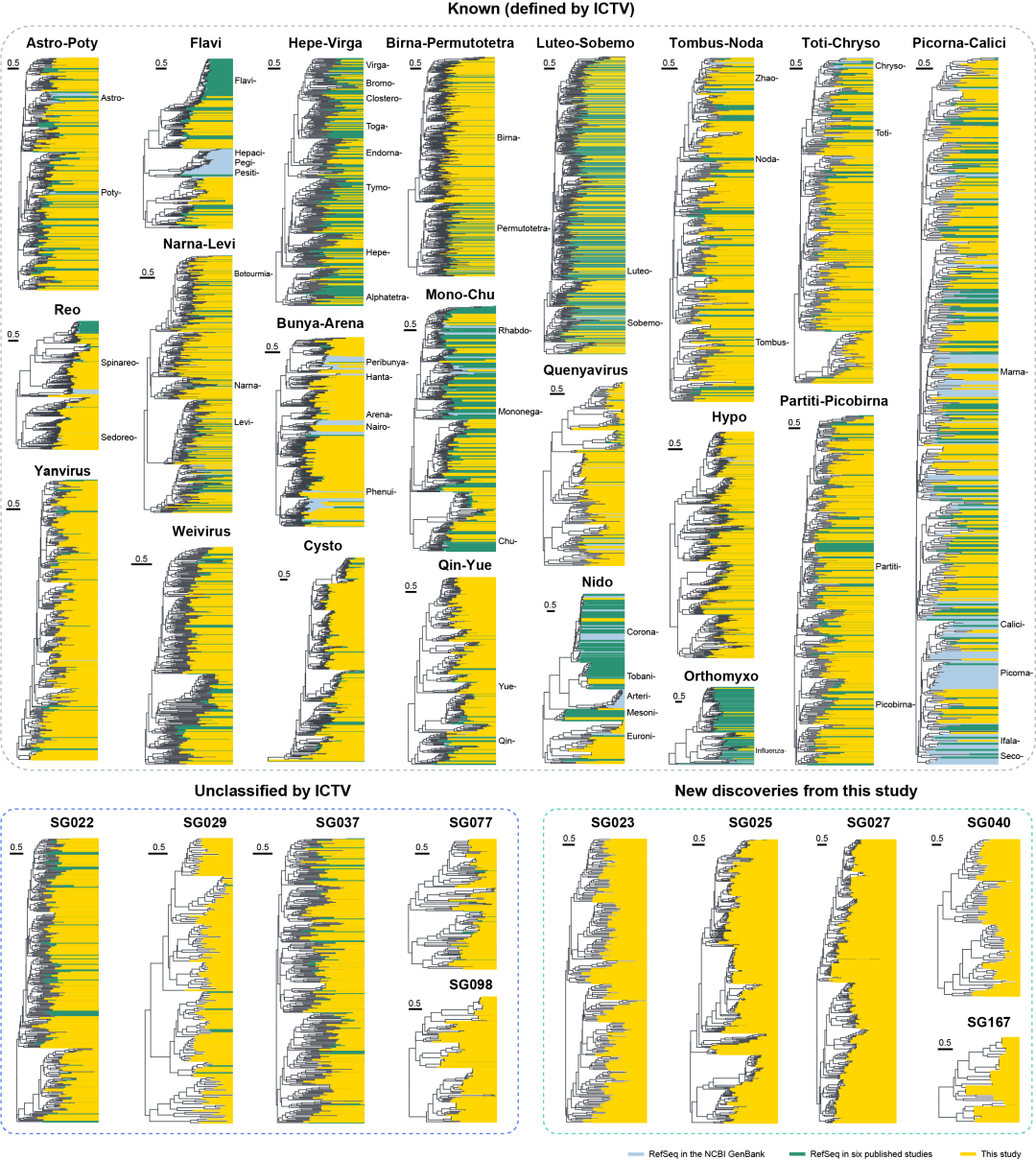 新發(fā)現(xiàn)病毒的遺傳多樣性(黃色部分)