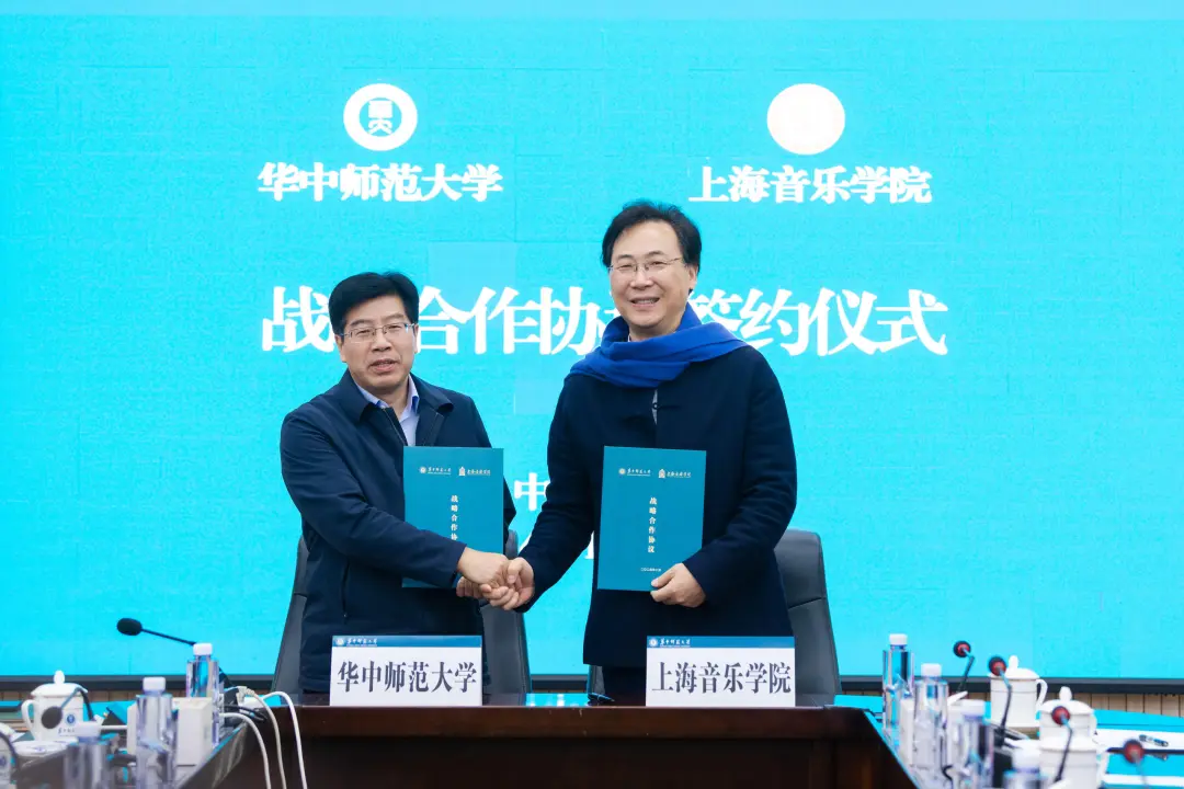 華中師范大學校長彭雙階和上海音樂學院院長廖昌永代表兩校簽署戰(zhàn)略合作協(xié)議。雙方?jīng)Q定在人才培養(yǎng)、學科建設(shè)、科學研究、美育育人和文化推廣等方面開展多層次、全方位、立體化的實質(zhì)性合作,實現(xiàn)兩校的互惠共贏、相互促進和共同發(fā)展,同時也為湖北與上海兩地的文化交流與融合搭建橋梁,促進區(qū)域文化生態(tài)的多元化與繁榮發(fā)展。