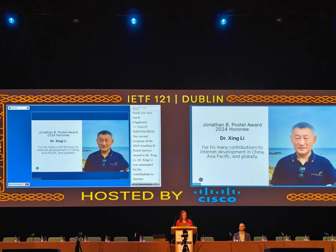 當(dāng)?shù)貢r(shí)間11月6日,在愛爾蘭都柏林舉行的第121屆 IETF大會(huì)上,國(guó)際互聯(lián)網(wǎng)協(xié)會(huì)將2024年度喬納森·波斯塔爾獎(jiǎng)(Jonathan Postel Award)授予清華大學(xué)李星教授,以表彰他為全球互聯(lián)網(wǎng)技術(shù)發(fā)展作出的杰出貢獻(xiàn)。