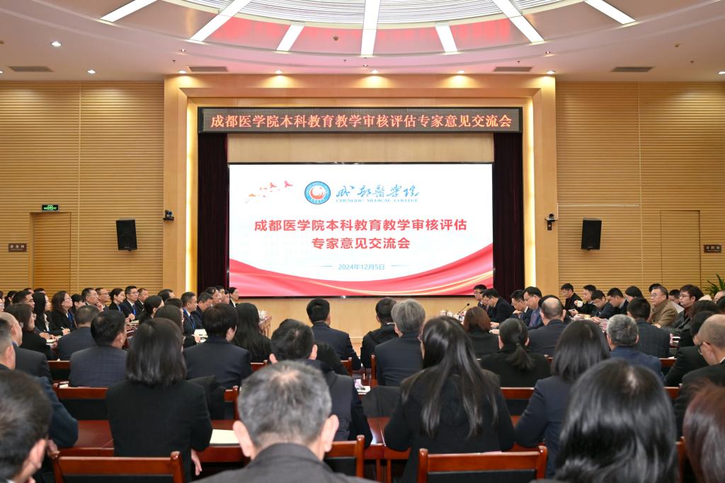 12月5日上午,本科教育教學(xué)審核評估專家組意見交流會在新都校區(qū)多功能廳召開。專家組組長、哈爾濱醫(yī)科大學(xué)校長季勇,專家組副組長、四川師范大學(xué)黨委副書記、校長趙國華,南京醫(yī)科大學(xué)黨委常委、副校長沈瑞林,天津中醫(yī)藥大學(xué)黨委常委、副校長王耀剛,暨南大學(xué)生物醫(yī)學(xué)工程技術(shù)研究所所長兼系主任薛巍,濟(jì)南大學(xué)教育與心理科學(xué)學(xué)院院長陳功香,川北醫(yī)學(xué)院臨床醫(yī)學(xué)院-附屬醫(yī)院黨委書記楊漢豐等專家組成員;省委教育工委委員、教育廳總督學(xué)傅明,教育廳督導(dǎo)與審計(jì)處、黨建與干部人才處等機(jī)關(guān)處室、評估院領(lǐng)導(dǎo);成都醫(yī)學(xué)院全體校常委,各學(xué)院、職能部門負(fù)責(zé)人,專業(yè)負(fù)責(zé)人參加會議。會議由趙國華主持。