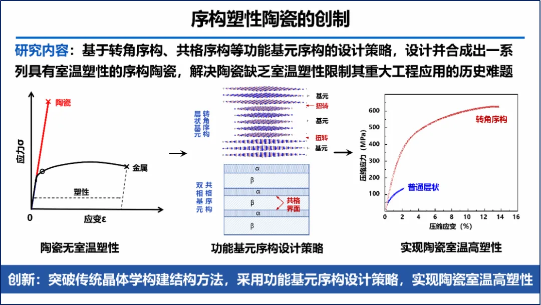 陶瓷具有輕質(zhì)、高強(qiáng)、耐高溫、耐磨損等優(yōu)異性能,但韌性較差,且在室溫或低溫下缺乏塑性,容易發(fā)生脆性斷裂,這成為其工程應(yīng)用的致命弱點(diǎn)。實(shí)現(xiàn)陶瓷在室(低)溫下的塑性這一重大科學(xué)目標(biāo)仍然面臨巨大挑戰(zhàn)。