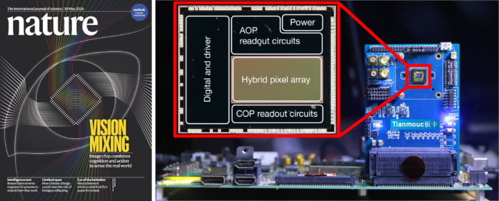 團隊借鑒人類視覺機制,創(chuàng)新性地提出了基于原語表示的多通路互補類腦視覺感知新范式。在此基礎上,研發(fā)出全球首款基于原語的類腦互補視覺芯片“天眸芯”,在顯著降低帶寬(降低90%)和功耗下,實現(xiàn)了每秒10000幀、10bit、130dB的高速、高精度、高動態(tài)范圍視覺感知,突破了傳統(tǒng)技術(shù)的局限,展現(xiàn)卓越的魯棒性和性能。團隊圍繞“天眸芯”構(gòu)建了完善的軟件工具平臺、算法庫和數(shù)據(jù)庫,在自動駕駛開放場景下展示了優(yōu)異性能。成果作為封面發(fā)表在《自然》,榮獲世界互聯(lián)網(wǎng)大會全球領先科技成果獎、Intel中國學術(shù)成就卓越研究獎。