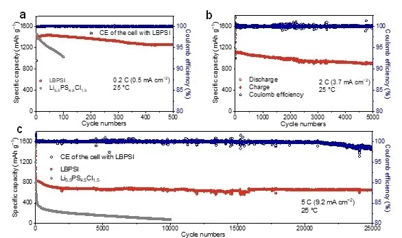 圖2. 基于LBPSI電解質(zhì)的全固態(tài)鋰硫電池的常溫循環(huán)性能。