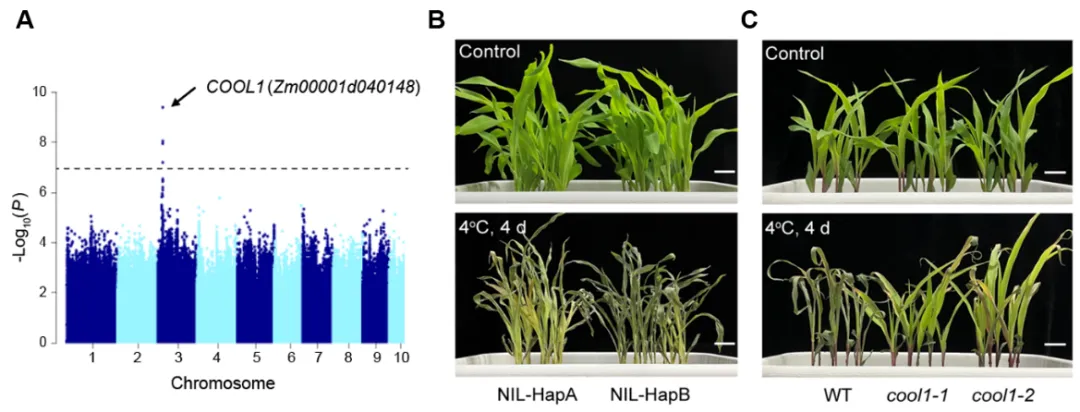 圖1 COOL1基因負調(diào)控玉米耐冷性