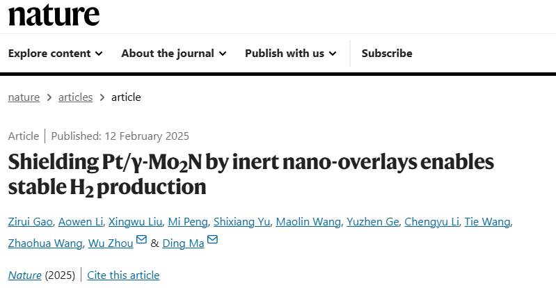 研究團隊在《Nature》雜志發(fā)表的研究成果題為“ShieldingPt/γ-Mo2N by Inert Nano-overlays Enables Stable H2 Production”,聚焦催化劑穩(wěn)定性,延續(xù)了馬丁教授此前在甲醇和水重整制氫方面的研究,創(chuàng)新性地引入稀土元素對催化劑進行改造,開發(fā)出了一種全新且泛用的高活性產氫催化劑穩(wěn)定策略。研究發(fā)現,當稀土元素存在于催化劑表面并保護住催化劑的“非界面活性位”時,催化劑的壽命得到了大幅提升。具體而言,催化劑中每個Pt原子可以產生1500萬個氫分子,這一“轉換數”整整超過了此前報道的最高記錄一個數量級。這一歷史性突破為高效、穩(wěn)定的制氫技術提供了全新思路。