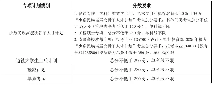 參加“大學(xué)生志愿服務(wù)西部計劃”“三支一扶計劃”“農(nóng)村義務(wù)教育階段學(xué)校教師特設(shè)崗位計劃”“國際中文教育志愿者”等項(xiàng)目之一,服務(wù)期滿且考核合格的考生;“退役大學(xué)生士兵”達(dá)到全國碩士研究生招生考試報考條件,3年內(nèi)參加全國碩士研究生招生考試可按教育部統(tǒng)一規(guī)定享受加分政策。符合上述條件并申請享受初試加分政策的考生,須在網(wǎng)上報名時按要求填報相關(guān)信息。未按規(guī)定申報或?qū)徍宋赐ㄟ^的,不享受加分政策。加分項(xiàng)不累計。報考專項(xiàng)計劃的考生,不再享受初試加分和少數(shù)民族照顧政策。