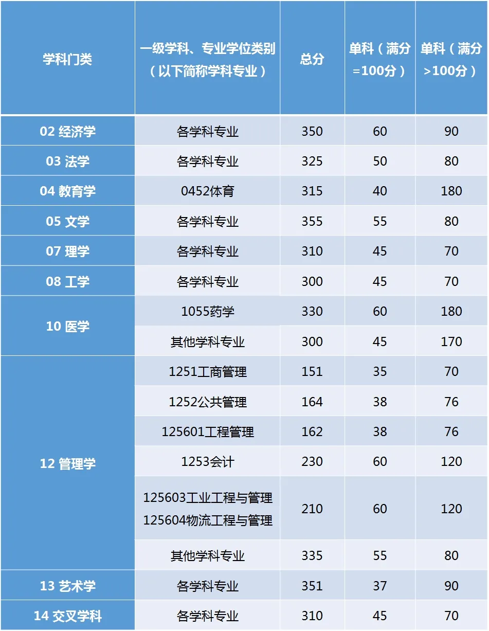 三、報考“退役大學(xué)生士兵”計劃的考生,初試成績不低于所報考專業(yè)A類考生國家線,按照考生總分與報考學(xué)科基本要求(見上表)的差值排序(初試滿分300分制的專業(yè)折算成500分制),由高到低通知復(fù)試。