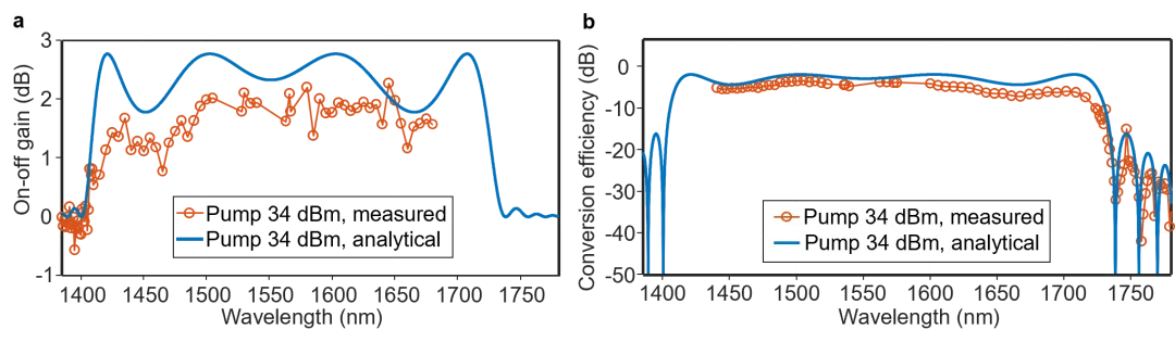 圖2 基于新一代非線性氮化硅集成光波導(dǎo)的超大帶寬光參量放大