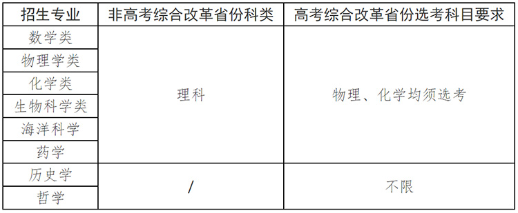 2025年我校強(qiáng)基計(jì)劃招生專業(yè)、招生科類及選考科目要求如下: