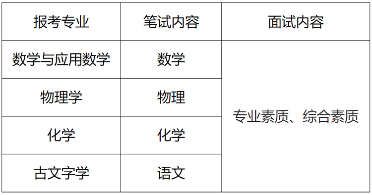 在考生筆試和面試成績(jī)分別達(dá)到60分基礎(chǔ)上,我校根據(jù)考生專業(yè)志愿和同省份該專業(yè)的招生計(jì)劃,按綜合成績(jī)由高到低順序確定預(yù)錄取名單。如綜合成績(jī)相同,優(yōu)先錄取高考成績(jī)高者,再相同,數(shù)學(xué)與應(yīng)用數(shù)學(xué)、物理學(xué)、化學(xué)專業(yè)依次為數(shù)學(xué)、語(yǔ)文、外語(yǔ)高考成績(jī)高者,古文字學(xué)專業(yè)依次為語(yǔ)文、數(shù)學(xué)、外語(yǔ)高考成績(jī)高者。同等情況下,優(yōu)先考慮體育測(cè)試成績(jī)好的考生。