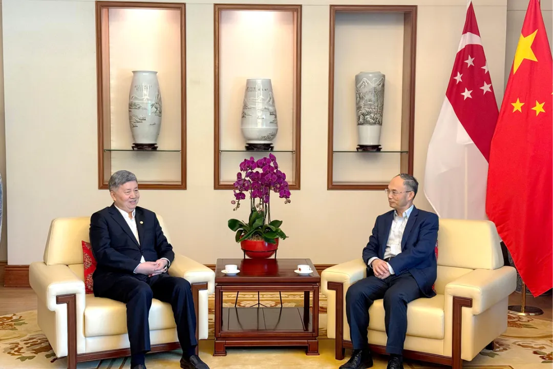 訪問期間,孫友宏一行拜訪了中國駐新加坡大使館,與曹忠明大使、韓俊教育公參、于海英科技參贊會見交流。雙方就與新加坡高校與科研機構的合作機會、人才交流和學生夏令營等議題進行了討論。