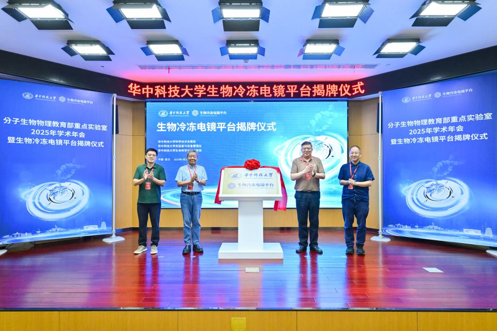 5月25日,華中科技大學生物冷凍電鏡平臺揭牌儀式在學術(shù)交流服務(wù)中心八號樓舉行。校長尤政,中國科學院院士、清華大學饒子和教授,生命學院院長劉劍峰及生物冷凍電鏡平臺主任馬聰共同為平臺揭牌。揭牌儀式由校實驗室與設(shè)備管理處處長劉紅軍主持。