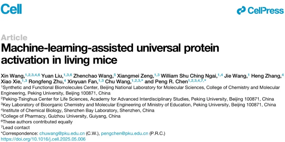 5月27日,北京大學(xué)化學(xué)與分子工程學(xué)院、前沿交叉學(xué)科研究院生命科學(xué)聯(lián)合中心陳鵬教授課題組和王初教授課題組的合作成果以“Machine-learning-assisted universal protein activation in living mice”為題在《細(xì)胞》(Cell)雜志在線發(fā)表。