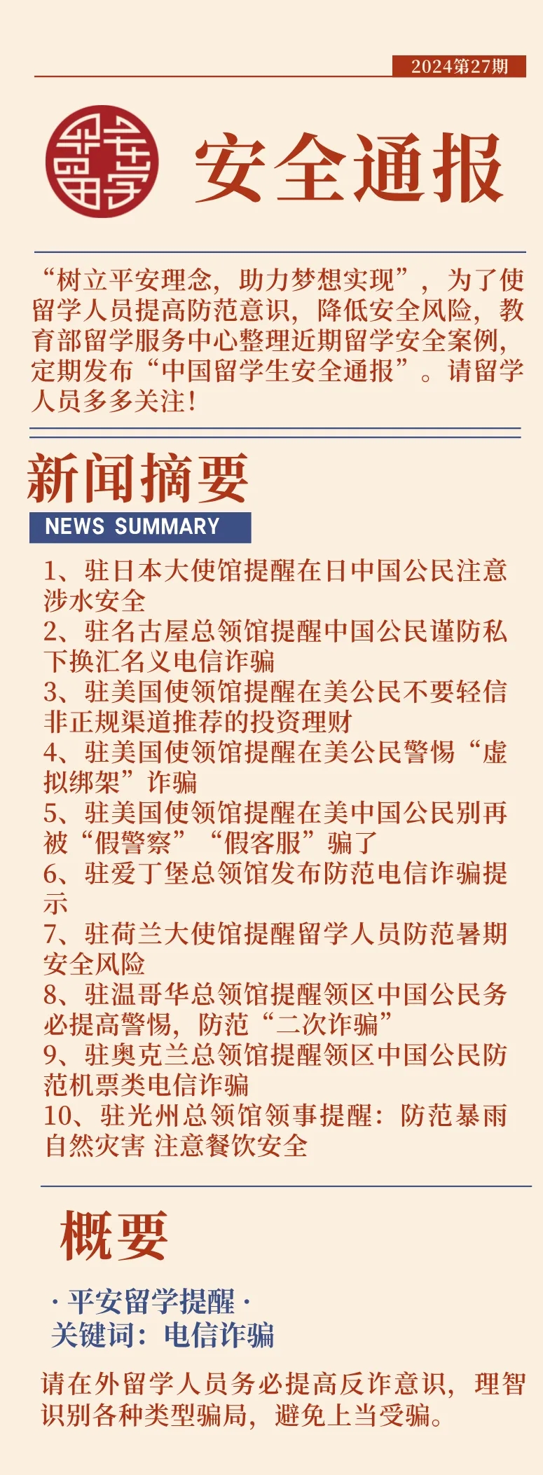 2024第27期中國留學生安全通報