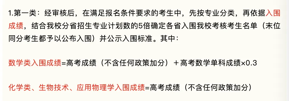 華南理工大學(xué)針對(duì)數(shù)學(xué)類專業(yè)入圍作單獨(dú)認(rèn)定,數(shù)學(xué)類入圍成績(jī)=高考成績(jī)(不含任何政策加分)+高考數(shù)學(xué)單科成績(jī)×0.3,同樣強(qiáng)調(diào)了數(shù)學(xué)單科成績(jī)的權(quán)重。