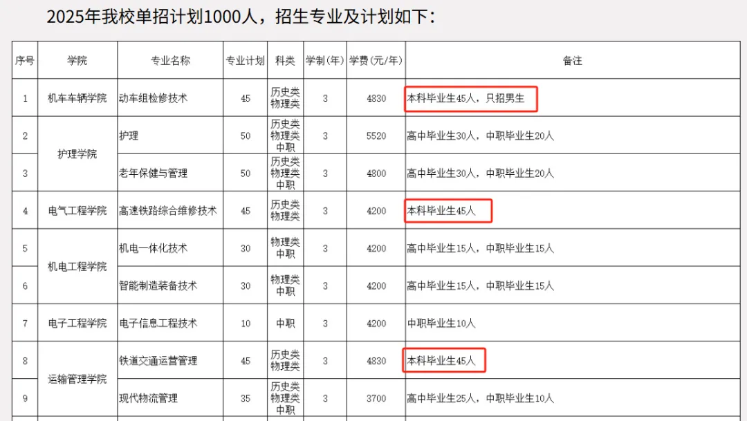 近日,鄭州鐵路職業(yè)技術(shù)學(xué)院公布的2025年單招計劃引發(fā)了廣泛關(guān)注和熱議。今年,學(xué)校繼續(xù)面向本科畢業(yè)生招生,計劃招生135人,涉及動車組檢修技術(shù)、高速鐵路綜合維修技術(shù)、鐵道交通運營管理三個專業(yè),畢業(yè)后發(fā)放??飘厴I(yè)證。