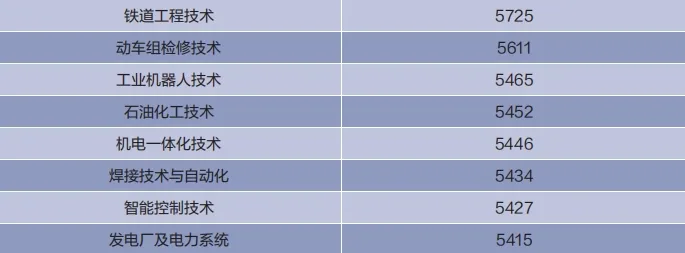 2023屆高職專業(yè)月收入TOP10排行榜中,鐵道類專業(yè)占據(jù)了前4名(鐵道機車5833元、鐵道交通運營管理5781元、鐵道工程技術(shù)5725、動車組檢修技術(shù)5611),基本與本科生平均月收入持平。
