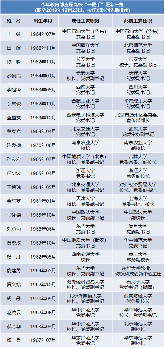 除跨校任職和校內調整外,今年履新的教育部直屬高?!耙话咽帧敝羞€有1人來自地方黨委。
