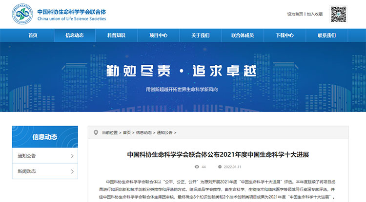 2021年度“中國(guó)生命科學(xué)十大進(jìn)展”評(píng)選結(jié)果