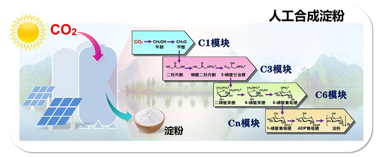淀粉是糧食最主要的成分,也是重要的工業(yè)原料。中國(guó)科學(xué)院天津工業(yè)生物技術(shù)研究所聯(lián)合大連化物所等單位,抽提自然光合作用的化學(xué)本質(zhì),從頭設(shè)計(jì)創(chuàng)建了從二氧化碳到淀粉合成的非自然途徑,解決了途徑代謝流從頭計(jì)算、關(guān)鍵酶元件設(shè)計(jì)組裝、生化途徑精確調(diào)控等科學(xué)問(wèn)題,以生物催化與化學(xué)催化耦合的11步反應(yīng),顛覆了自然光合作用固定二氧化碳合成淀粉的復(fù)雜生化過(guò)程,在國(guó)際上首次實(shí)現(xiàn)了二氧化碳到淀粉的人工全合成,能效和速率超越玉米等農(nóng)作物,突破了自然光合作用局限,為淀粉的車(chē)間制造打開(kāi)了一扇窗,并為二氧化碳原料合成復(fù)雜分子提供了新思路。在國(guó)際上引起強(qiáng)烈反響,被認(rèn)為是一項(xiàng)里程牌式突破,將在下一代生物制造和農(nóng)業(yè)生產(chǎn)中帶來(lái)變革性影響。