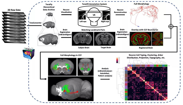全腦范圍完整神經(jīng)元形態(tài)成像、重建、配準(zhǔn)、分析平臺(tái)和流程