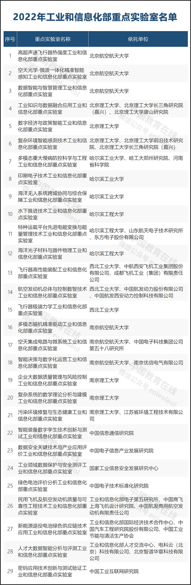 2022年工業(yè)和信息化部重點實驗室名單公布