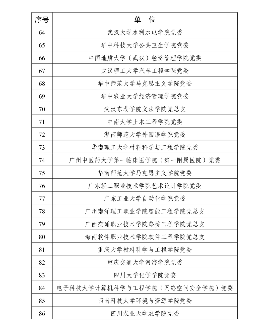 第四批“全國黨建工作標(biāo)桿院系”培育創(chuàng)建單位名單