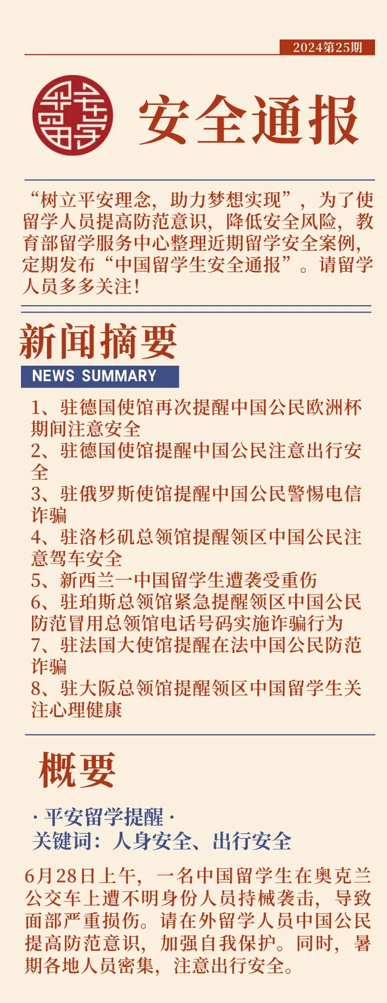 2024第25期中國留學(xué)生安全通報