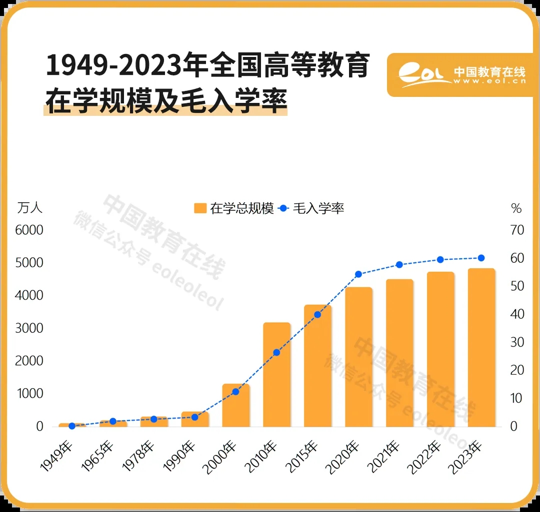 2023年,我國高等教育毛入學(xué)率達(dá)到60.2%,比1949年提高59.9個百分點,提前完成“十四五”規(guī)劃目標(biāo)。