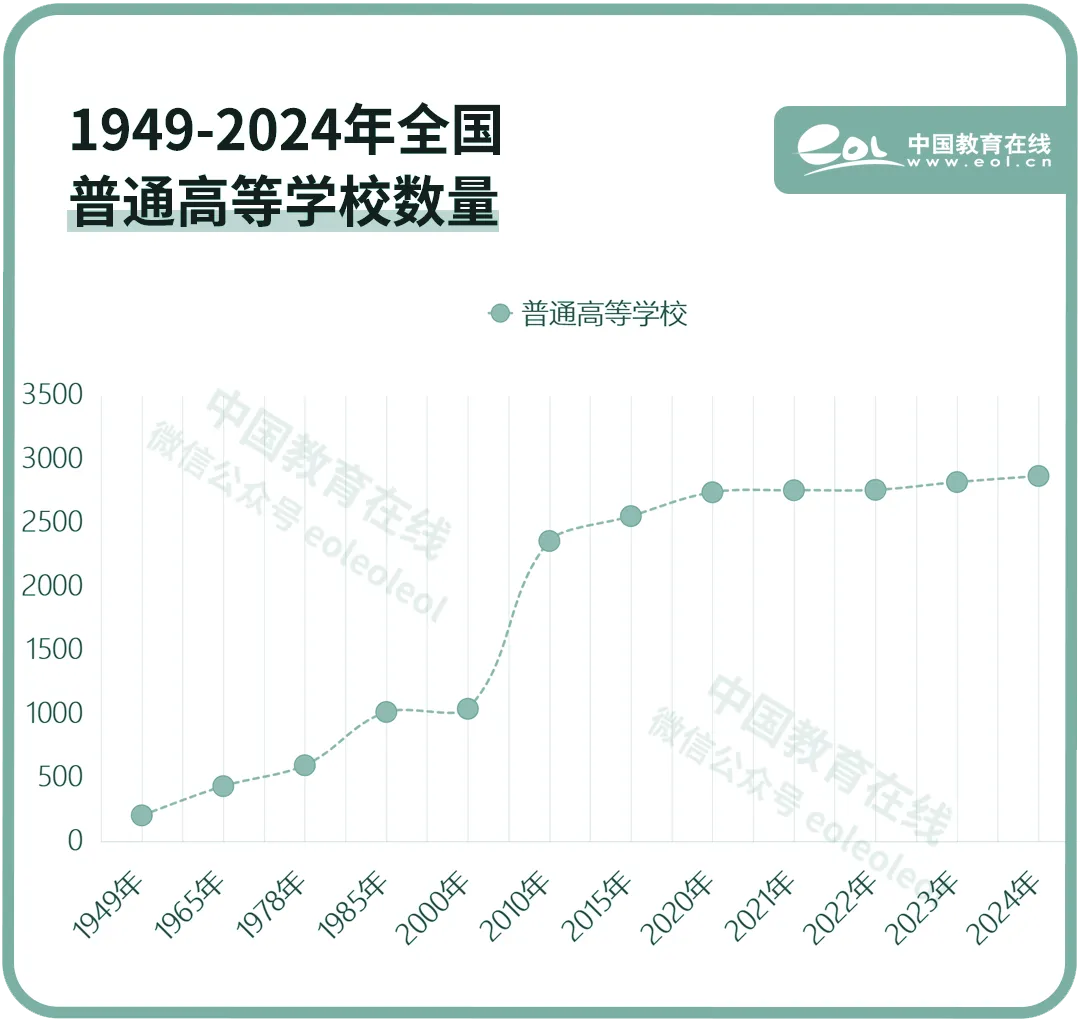 2024年,我國普通高等學(xué)校數(shù)量達(dá)到2868所,比1949年增長14倍。