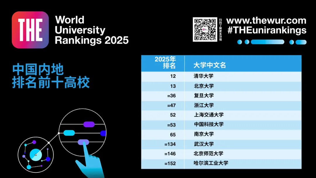 · 在2025年泰晤士高等教育(THE)世界大學(xué)排名中,中國(guó)內(nèi)地高校排名穩(wěn)步上升,繼續(xù)向世界前十名邁進(jìn)。