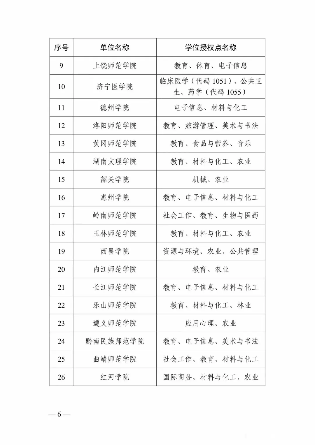 2023年度審核增列的博士、碩士學位授予單位及其新增學位授權(quán)點名單如下: