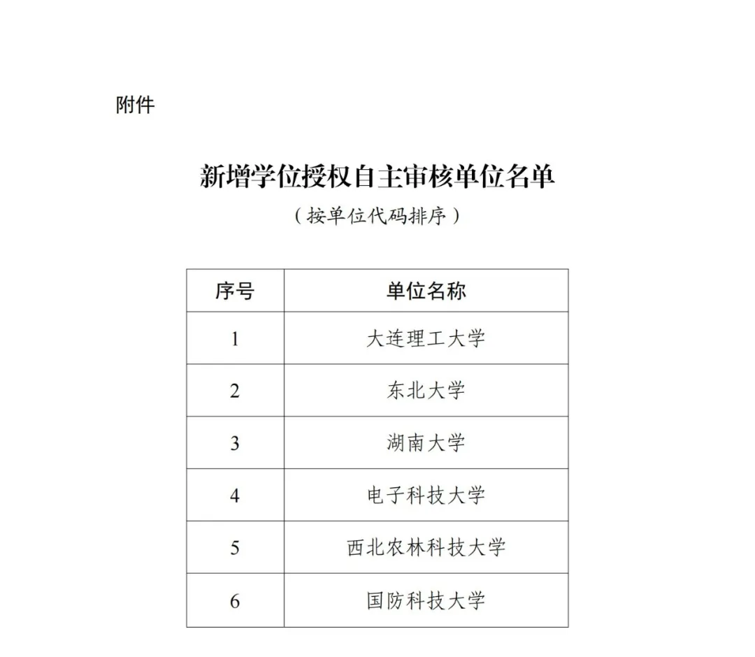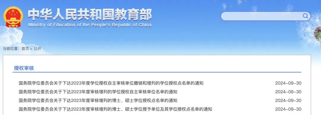 近日,教育部官網(wǎng)公開國(guó)務(wù)院學(xué)位委員會(huì)關(guān)于下達(dá)2023年度學(xué)位授權(quán)自主審核單位撤銷和增列的學(xué)位授權(quán)點(diǎn)名單和2023年度審核增列的學(xué)位授權(quán)自主審核單位名單的通知。