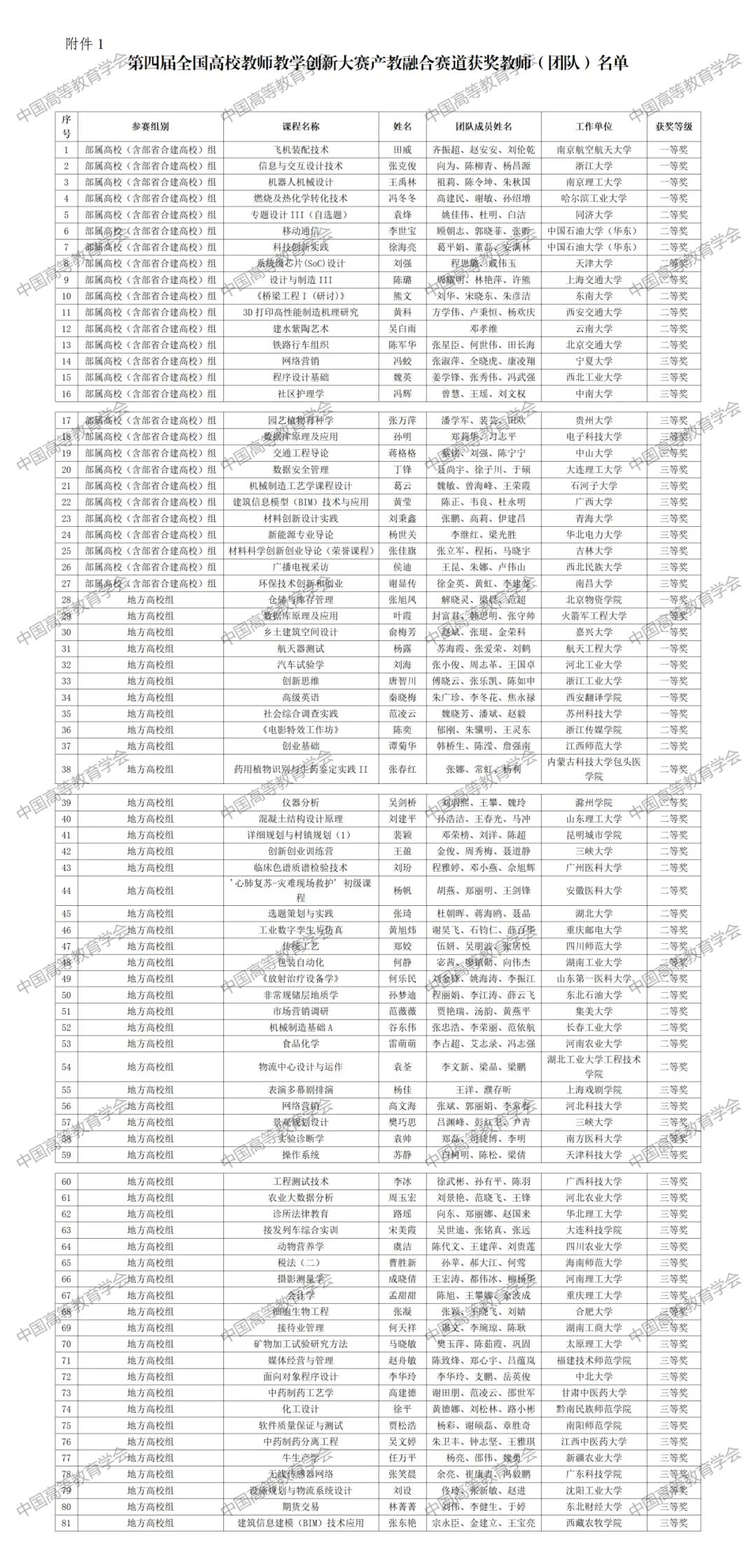 由教育部高等教育司指導(dǎo)、中國高等教育學(xué)會主辦的第四屆全國高校教師教學(xué)創(chuàng)新大賽產(chǎn)教融合賽道全國賽于11月11-14日在重慶舉辦。第四屆大賽產(chǎn)教融合賽道歷經(jīng)省賽、全國賽,經(jīng)專家評審,共有12個(gè)教師(團(tuán)隊(duì))獲一等獎(jiǎng)、28個(gè)教師(團(tuán)隊(duì))獲二等獎(jiǎng)、41個(gè)教師(團(tuán)隊(duì))獲三等獎(jiǎng)。現(xiàn)將獲獎(jiǎng)名單予以公布,詳見附件。
